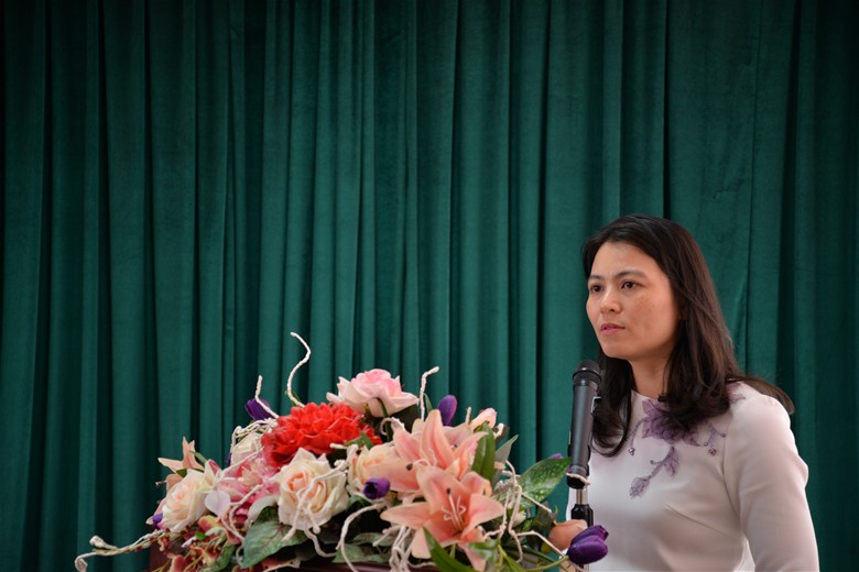 Ảnh: Bà Phan Thị Hồng Hạnh phát biểu tại buổi lễ bế giảng